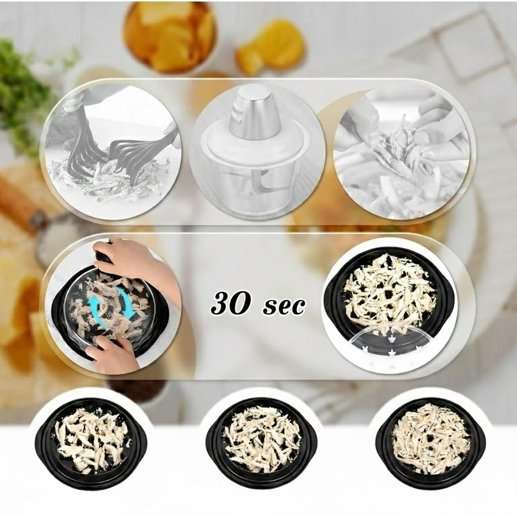 Plus besoin de déchirer à la main. Poulet, bœuf ou porc, tout est prêt en quelques secondes.