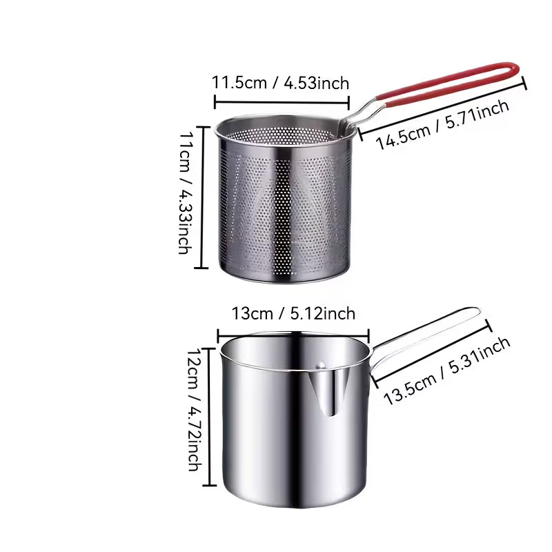 1 ensemble, friteuse en acier inoxydable avec panier, accessoire de cuisine style poisson et chips japonais, ustensile alimentaire sûr, résistant et facile à nettoyer, idéal pour les amateurs de cuisson maison et de friture, friteuse élégante.